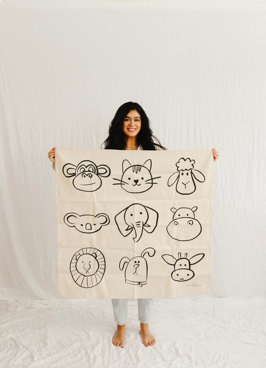 Another awesome cloth design! I love that she can add to the animals to make them more detailed or color them as they are. We all have fun playing with our little one's coloring cloths and enjoying art time together.